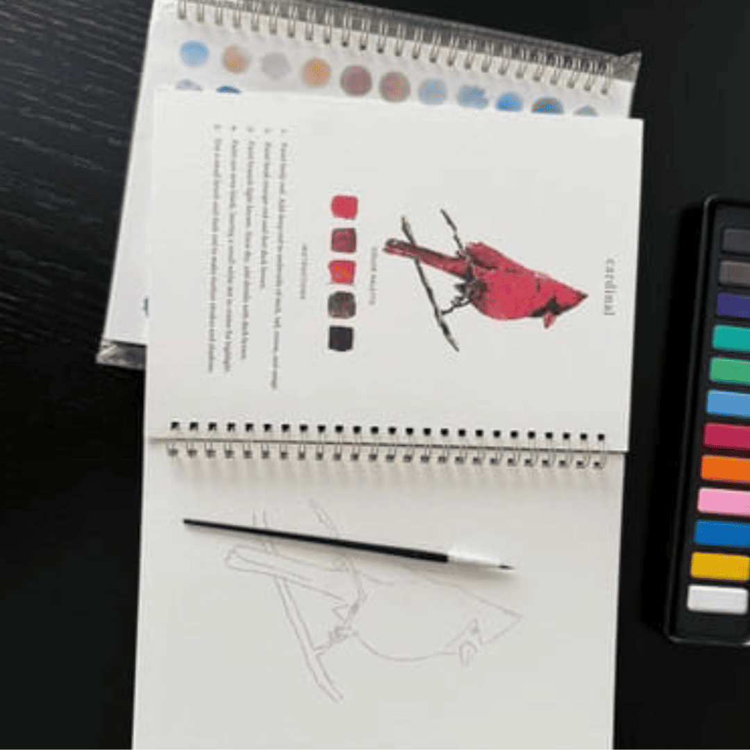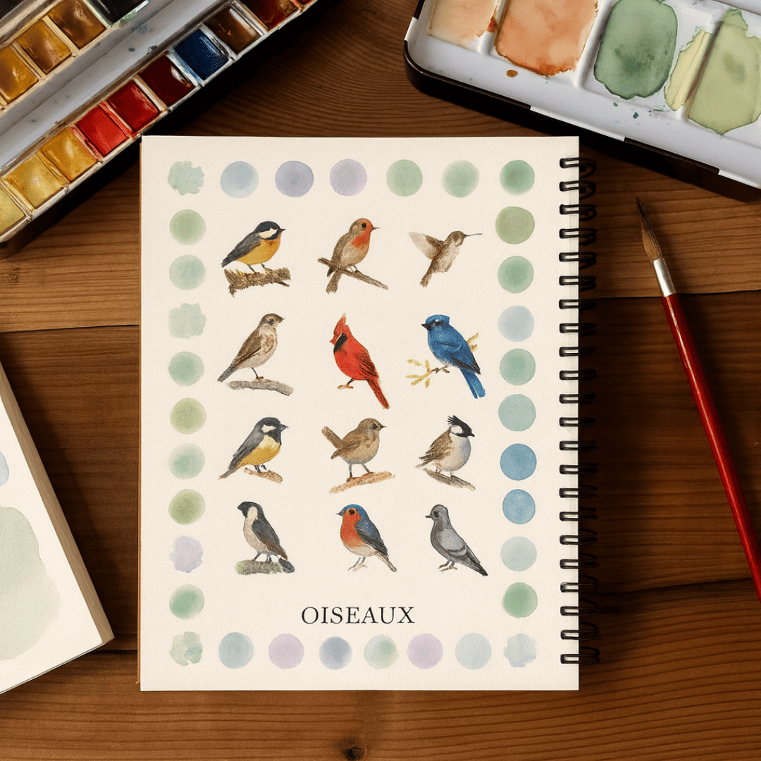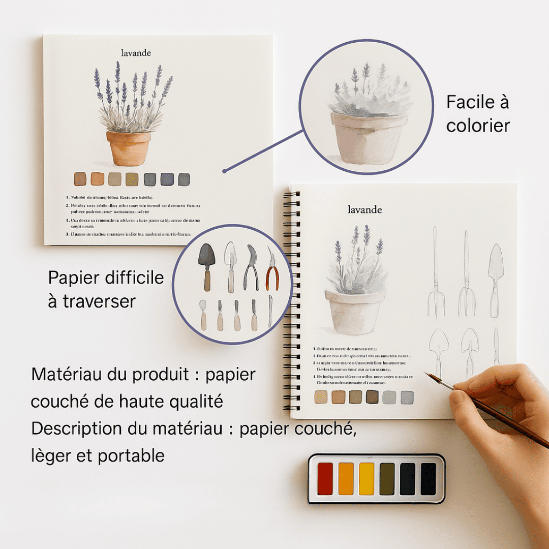 Notre carnet contient 12 pages pré-dessinées, pensées pour vous accompagner pas à pas et vous permettre de créer de magnifiques aquarelles dès la première utilisation.
