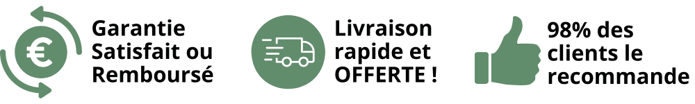 Nous offrons une garantie de satisfaction de 30 jours. Si vous n'êtes pas entièrement satisfait de votre achat, vous pouvez nous le retourner pour un remboursement complet, sans poser de questions.